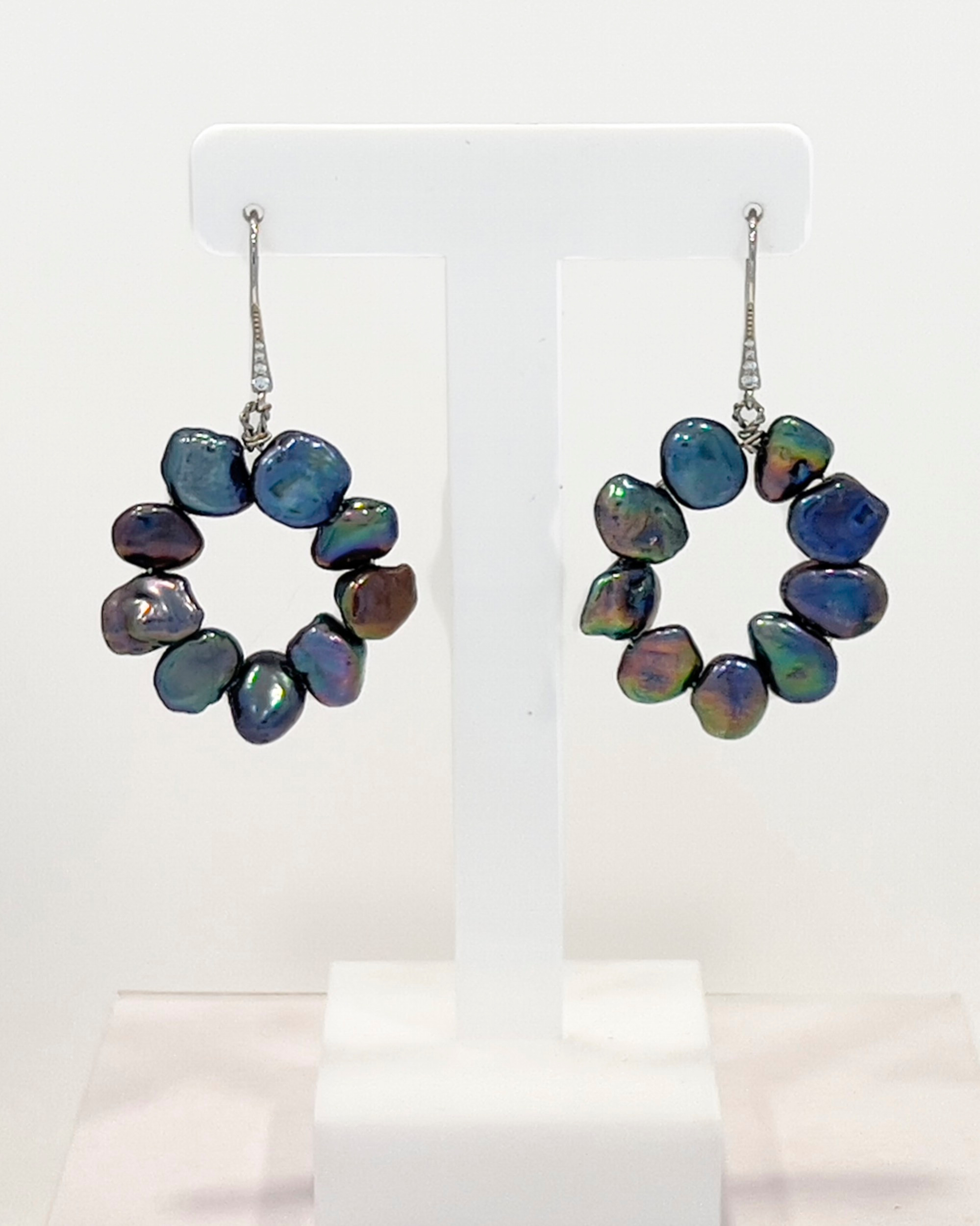 Elegant and versatile, these Classic Drop Earrings feature dark flat baroque pearls suspended within a polished rhodium-plated sterling silver loop. The contrast between the lustrous pearls and sleek metalwork creates a sophisticated piece that transitions effortlessly from day to evening wear, adding a refined touch to any ensemble.